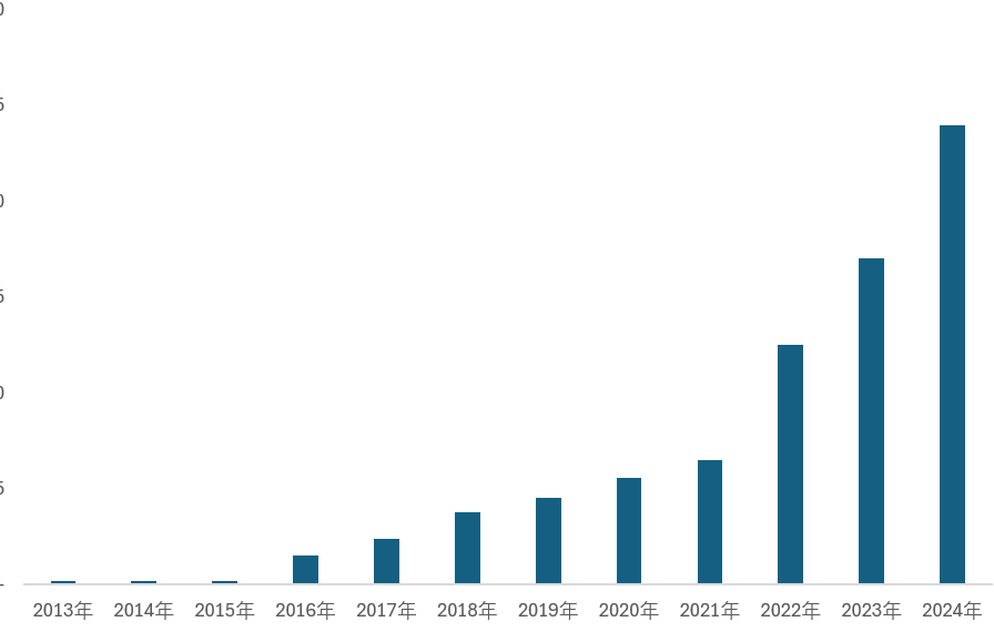 2013-2024年德國(guó)歷年電化學(xué)儲(chǔ)能裝機(jī)容量規(guī)模走勢(shì)