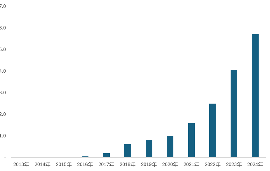 2013-2024年英國(guó)歷年電化學(xué)儲(chǔ)能裝機(jī)容量規(guī)模走勢(shì)
