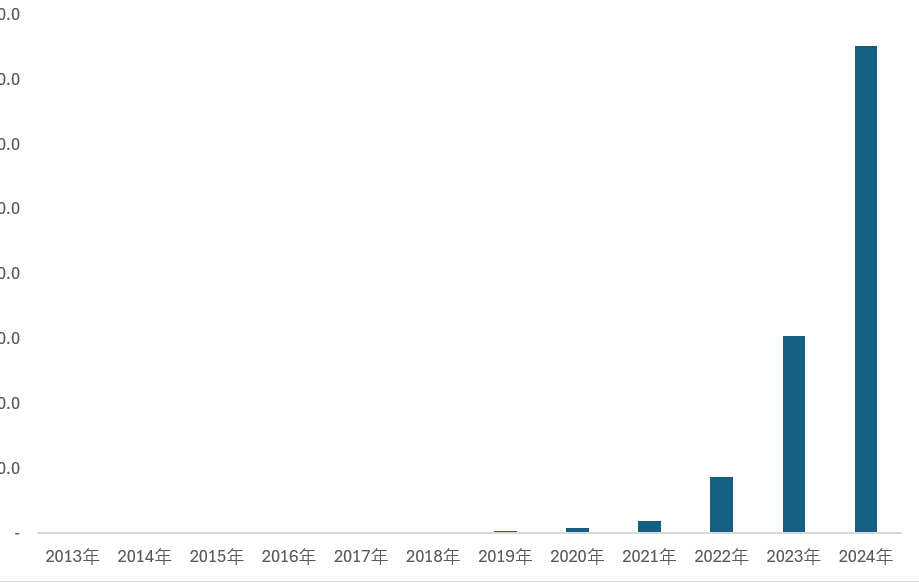 2013-2024年中國(guó)歷年電化學(xué)儲(chǔ)能裝機(jī)容量規(guī)模走勢(shì)