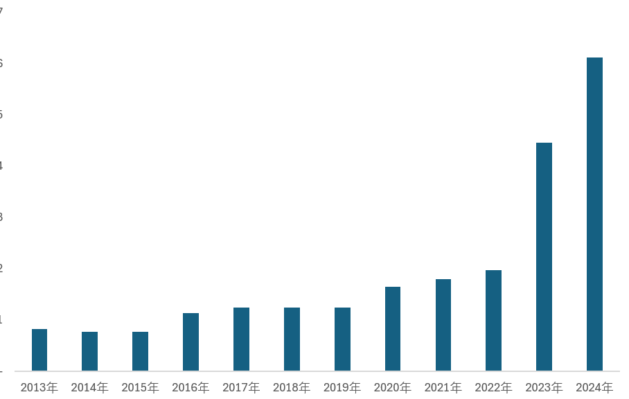 2013-2024年日本歷年電化學(xué)儲能裝機(jī)容量規(guī)模走勢