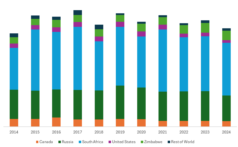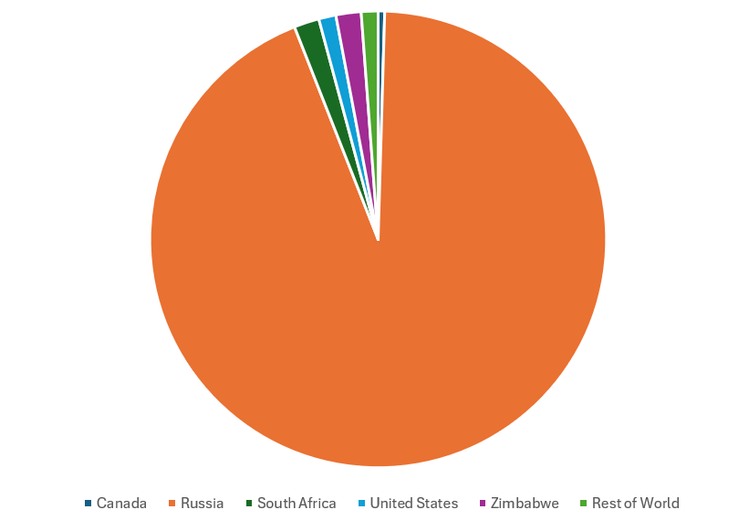 2、全球鉑族金屬儲(chǔ)量數(shù)據(jù)統(tǒng)計(jì)
