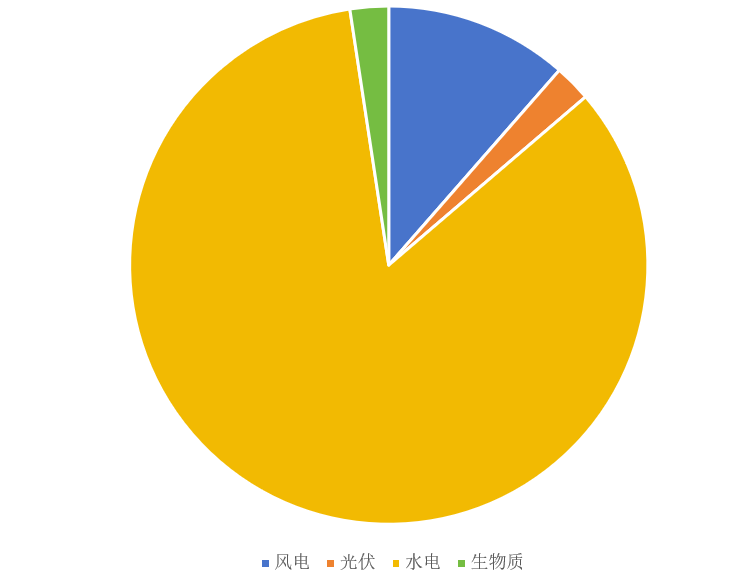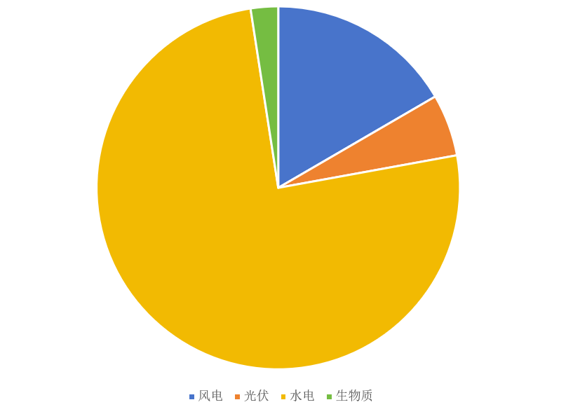 2、可再生能源發(fā)電裝機容量結構(風電+光伏發(fā)電+水電+生物質發(fā)電)