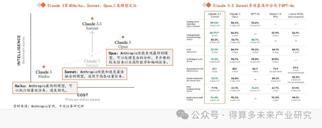 Claude 3.5 Sonnet在絕大多數(shù)基準評估中都超越了競品大模型。 今年 3 月 4 日, Anthropic 發(fā)布 Claude 3 系列模型,包含 Opus 、 Sonnet 和 HaikuOpus 代表 Anthropic 最高級、最智能的模型, Sonnet 代表中等級別的模型,在性能和成本效益之間取得平衡, Haiku 代表入門級別或最基礎(chǔ)的快速模型,其中, Claude 3 Opu 為 Claude 3 系列模型的最強版本,根據(jù)官方資料其性能全面超過了 GPT 4 。值得注意的是, Claude 3 全系列模型具有與其他領(lǐng)先模型同等的復(fù)雜視覺功能,可以處理各種視覺格式,包括照片、圖表、圖形和技術(shù)圖表。 6 月 21 日, Anthropic 發(fā)布了全新大模型 Claude 3.5 Sonnet ,號稱為“迄今為止最智能的模型”。據(jù) Anthropic 介紹, Claude 3.5 Sonnet 在絕大多數(shù)基準評估中都超越了競品大模型和自家前代最強 Claude 3 Opus ,與此同時,運行速度、成本與自家前代 Claude 3 Sonnet 相當。