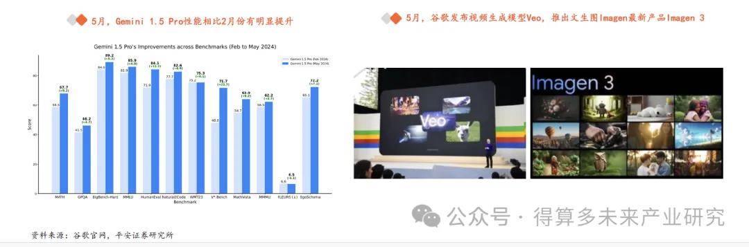 谷歌發(fā)布了視頻生成模型 Veo 以及文生圖模型 Imagen 3 Veo 模型對標 Sora ,能夠根據(jù)文字、圖片和視頻的提示生成長度超過 1 分鐘、分辨率最高 1080p 的視頻; Imagen 3 文生圖模型是 Imagen 系列的升級版,從細節(jié)擬真度來看對標 Midjourney v6 。
