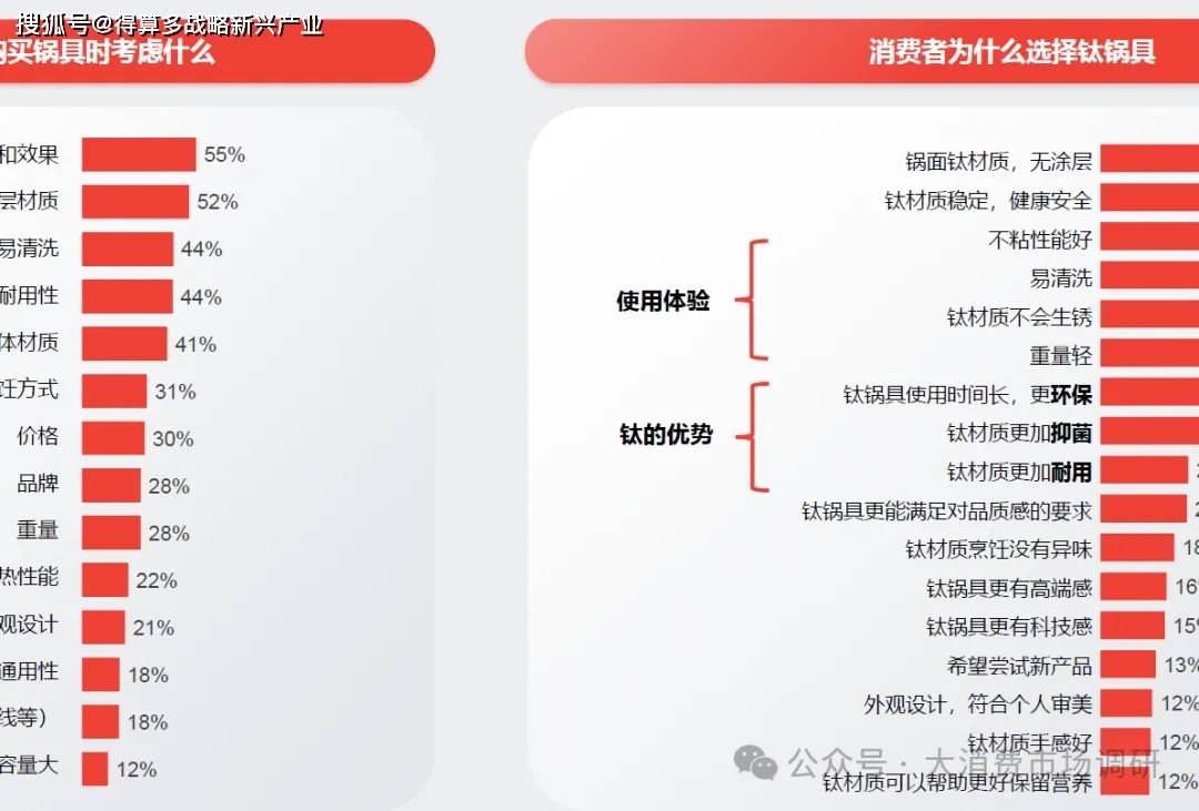? 鈦鍋具無(wú)涂層、穩(wěn)定健康安全的特點(diǎn)很好地匹配消費(fèi)者需求,其次使用體驗(yàn)佳也是消費(fèi)者選擇鈦鍋具的原因