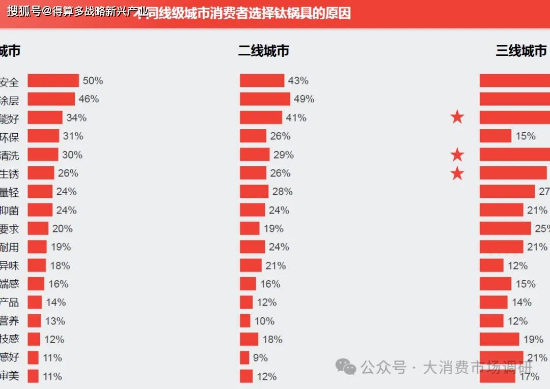 選購(gòu)鈦鍋具時(shí),一線用戶更看重材質(zhì)本身特點(diǎn),三線用戶更看重實(shí)際體驗(yàn)