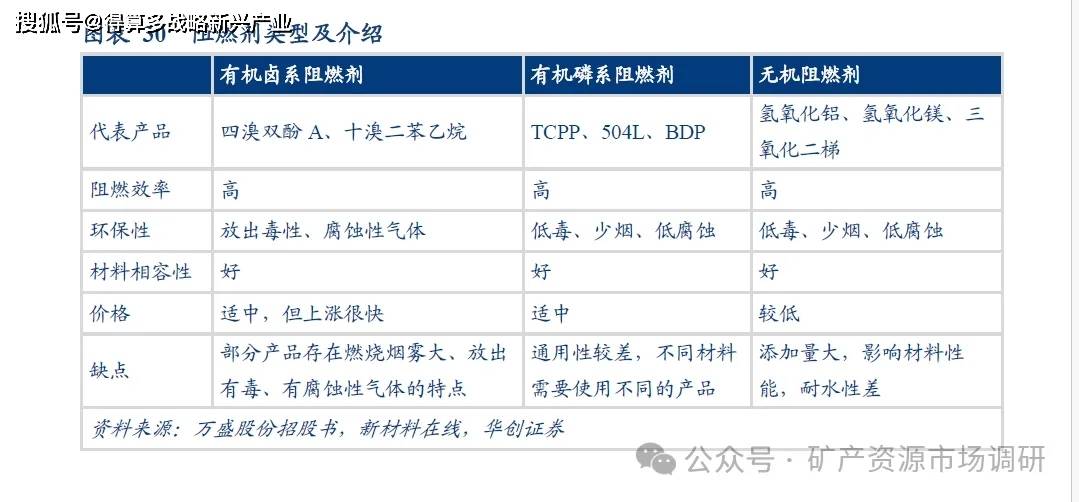 鹵溴系-銻系阻燃劑仍在阻燃劑市場(chǎng)占據(jù)重要位置。阻燃劑種類豐富,其中有機(jī)鹵溴系是常用阻燃劑產(chǎn)品,需要與銻系阻燃劑配合使用以產(chǎn)生協(xié)同阻燃作用,是阻燃領(lǐng)域中主要的阻燃劑產(chǎn)品之一(2020 年占比21%)。近年來(lái)隨著環(huán)保意識(shí)增強(qiáng),無(wú)鹵化成為阻燃領(lǐng)域的趨勢(shì),氫氧化鋁系和有機(jī)磷系阻燃劑以其高效、低毒、少煙和低腐蝕等優(yōu)點(diǎn)成為使用的新方向(2020 年占比52.3%)。但由于鹵溴系阻燃劑所具備的高阻燃效率、長(zhǎng)期應(yīng)用穩(wěn)定性以及良好的電性能等特質(zhì)是無(wú)鹵阻燃劑無(wú)法比擬,鹵溴系-銻系阻燃劑仍然無(wú)法被其他的阻燃劑完全取代,大批環(huán)境友好的溴系阻燃劑品種,將會(huì)在今后得到快速穩(wěn)定的發(fā)展,進(jìn)而帶動(dòng)銻系阻燃劑消費(fèi)量增加,預(yù)計(jì)鹵溴系-銻系阻燃劑仍將是全球最主要使用的阻燃劑之一。