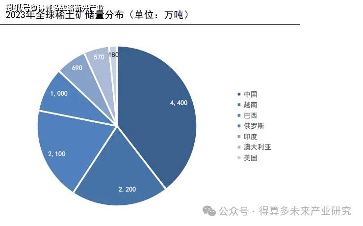 稀土資源分布集中。據(jù)USGS數(shù)據(jù),全球稀土資源儲量大約為1.1億噸。其中,中國稀土儲量為4400萬噸,占全球資源的40%;中國、越南、巴西、俄羅斯合計CR4達(dá)到88%。中重稀土含量高的離子型稀土礦分布則更為集中,僅中國、緬甸等少數(shù)國家擁有。中國稀土資源“北輕南重”,輕稀土主要集中在內(nèi)蒙古、山東等北部省份及四川省部分地區(qū);中重稀土主要集中在江西贛州地區(qū)、廣東粵東地區(qū)、廣西、福建、湖南等地。