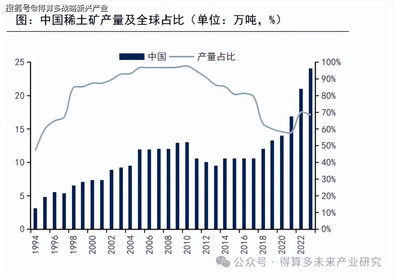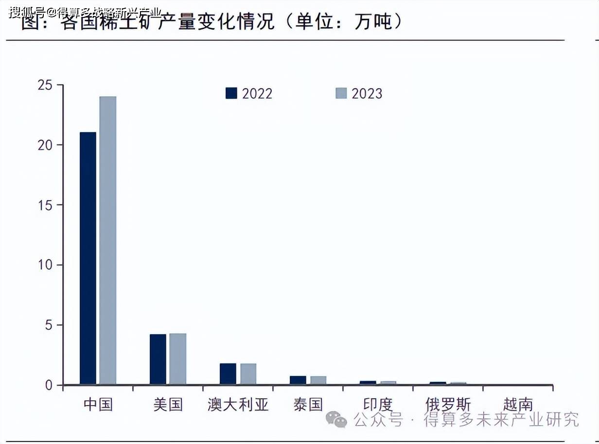 全球稀土礦供應(yīng)變遷。美國對稀土礦的大規(guī)模開采始于20世紀(jì)50年代,一度是全球最重要的稀土供應(yīng)國。80年代起中國稀土礦產(chǎn)量加速增長,隨著低價稀土的沖擊,以及美國對生產(chǎn)環(huán)境監(jiān)管的愈發(fā)苛刻,到90年代中國已成為全球稀土供應(yīng)中心。2003年,美國稀土資源開采停滯。到2010年我國稀土礦產(chǎn)量達(dá)13萬噸,占全球總產(chǎn)量的97.7%。為解決國內(nèi)企業(yè)惡行競爭的局面,中國加強(qiáng)和完善了稀土出口管理,并堅決打擊非法開采。隨著中國稀土開采管控加強(qiáng)以及海外稀土礦的復(fù)產(chǎn),全球稀土供應(yīng)呈現(xiàn)多元趨勢,其中我國產(chǎn)量占比呈現(xiàn)下降趨勢,近年來穩(wěn)定在60%左右水平,但仍遠(yuǎn)高于儲量占比。
