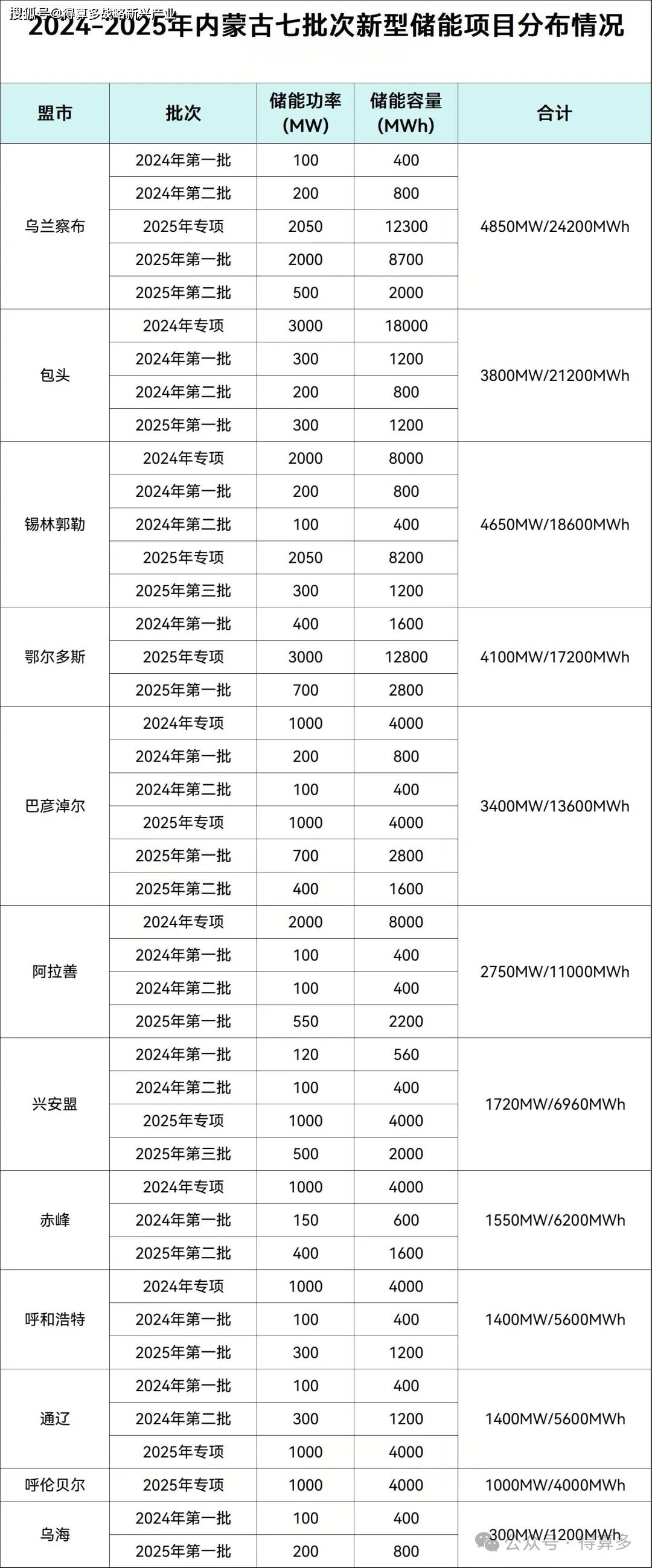 2024 年,內(nèi)蒙古新型儲(chǔ)能裝機(jī)迎來爆發(fā)式增長,新增裝機(jī)達(dá) 708 萬千瓦,同比增長 2.4 倍,總裝機(jī)規(guī)模成功突破 1000 萬千瓦,成為全國首個(gè)新型儲(chǔ)能裝機(jī)超千萬千瓦的省份。而且,這一發(fā)展態(tài)勢仍在不斷加速。依據(jù)內(nèi)蒙古《2024—2025 年新型儲(chǔ)能發(fā)展專項(xiàng)行動(dòng)方案》以及兩會(huì)部署,2025 年內(nèi)蒙古計(jì)劃開工建設(shè) 35 個(gè)新型儲(chǔ)能項(xiàng)目,新開工裝機(jī) 1000 萬千瓦,新投產(chǎn) 600 萬千瓦,預(yù)計(jì) 2025 年裝機(jī)量將在 2024 年基礎(chǔ)上實(shí)現(xiàn)翻倍,持續(xù)引領(lǐng)全國新型儲(chǔ)能產(chǎn)業(yè)發(fā)展。