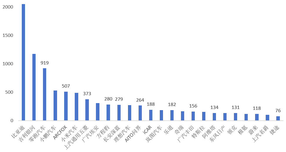 4、10月份海南省新能源汽車銷量——品牌結構(排名前20品牌)