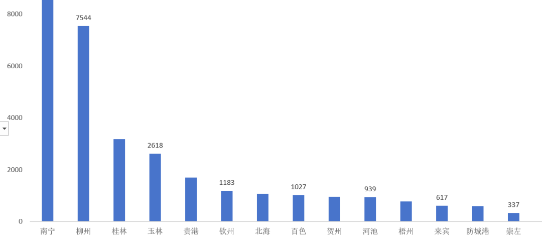 5、10月份廣西新能源汽車銷量——區(qū)域結(jié)構(gòu)(各地級市排名)