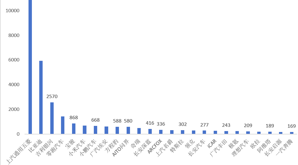 4、10月份廣西新能源汽車銷量——品牌結(jié)構(gòu)(排名前20品牌)