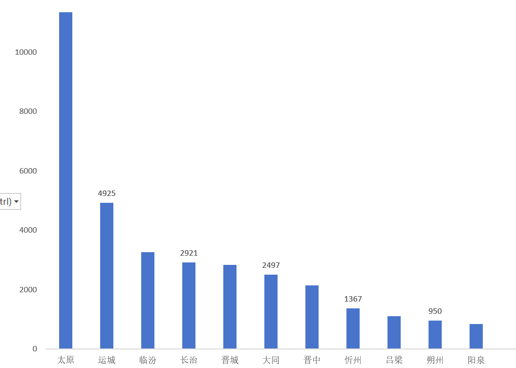 5、10月份山西省新能源汽車銷量——區(qū)域結(jié)構(gòu)(各地級(jí)市排名)