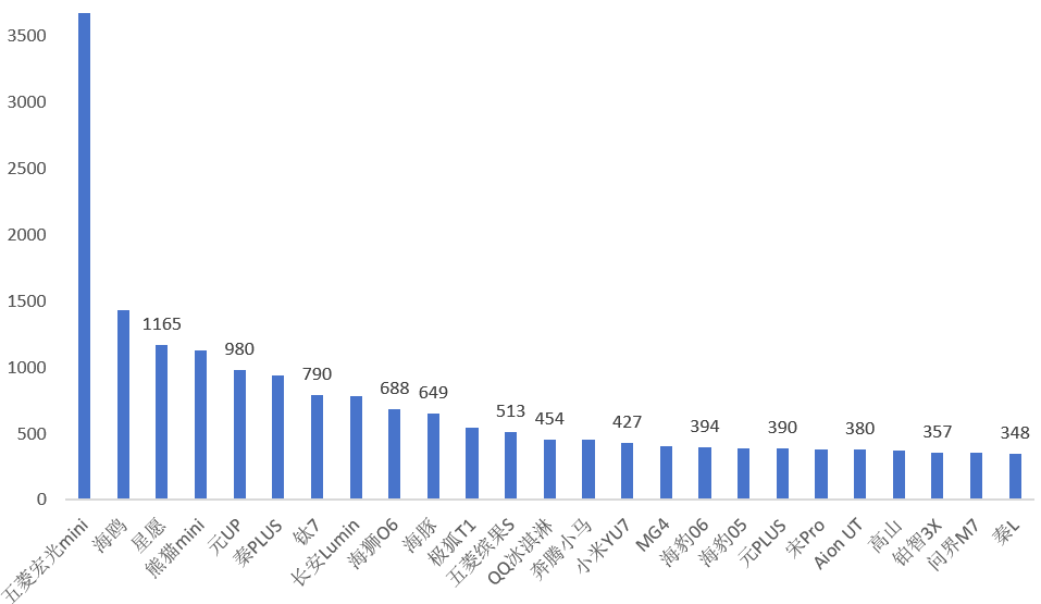 3、10月份山西省新能源汽車銷量——車型結(jié)構(gòu)(排名前20車型)