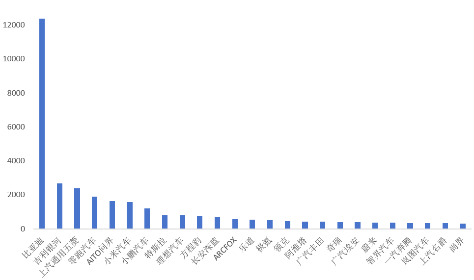 4、10月份安徽省新能源汽車銷量——品牌結(jié)構(gòu)(排名前20品牌)