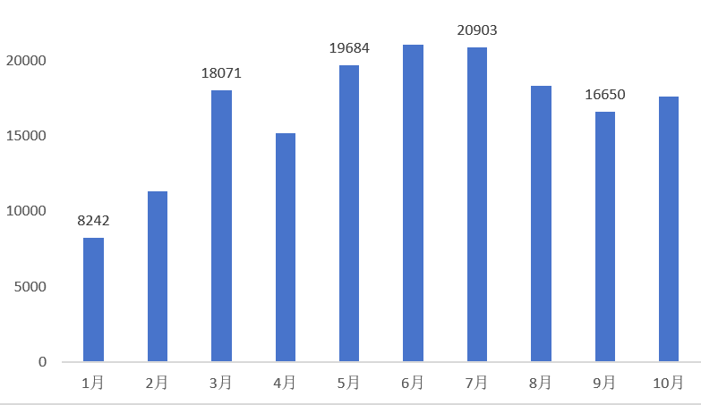 1、內(nèi)蒙古新能源汽車銷量規(guī)模走勢(shì)