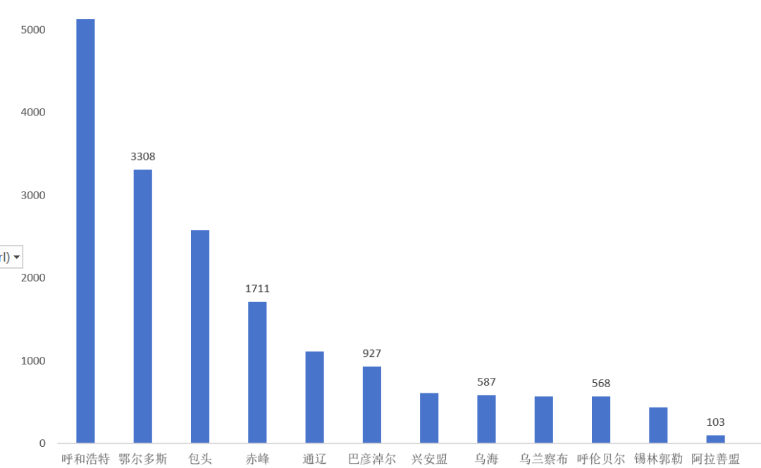 5、10月份內(nèi)蒙古新能源汽車銷量——區(qū)域結(jié)構(gòu)(各地級(jí)市排名)