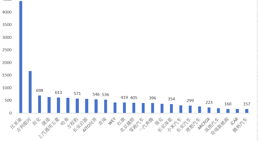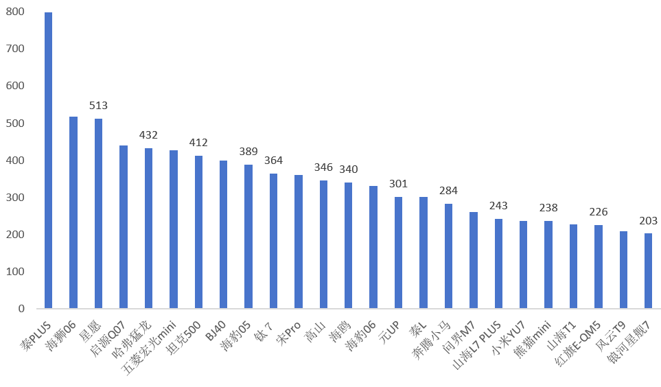 3、10月份內(nèi)蒙古新能源汽車銷量——車型結(jié)構(gòu)(排名前20車型)
