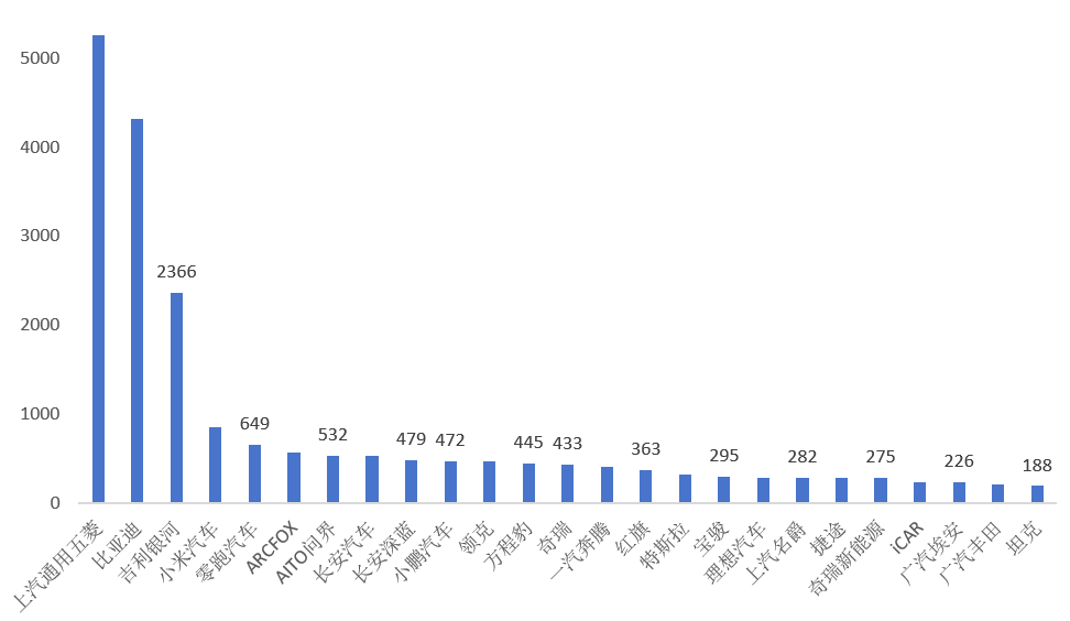 4、10月份云南省新能源汽車銷量——品牌結(jié)構(gòu)(排名前20品牌)