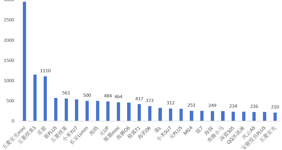 3、10月份云南省新能源汽車銷量——車型結(jié)構(gòu)(排名前20車型)